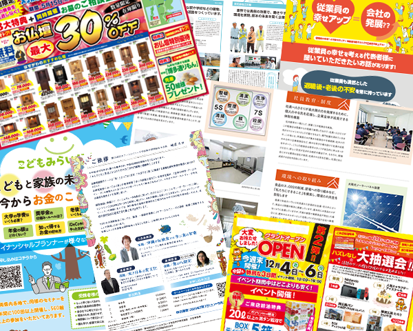 いちばん多いお仕事がチラシ・パンフ・カタログなどの印刷物です。以前は新聞の折込チ...